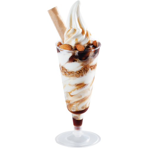 Delicioso cucuricho con forma única relleno de helado blando cremoso de vainilla. Decorado con galletas de chocolate y sirope. Una experiencia diferente y divertida.